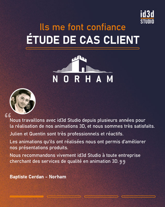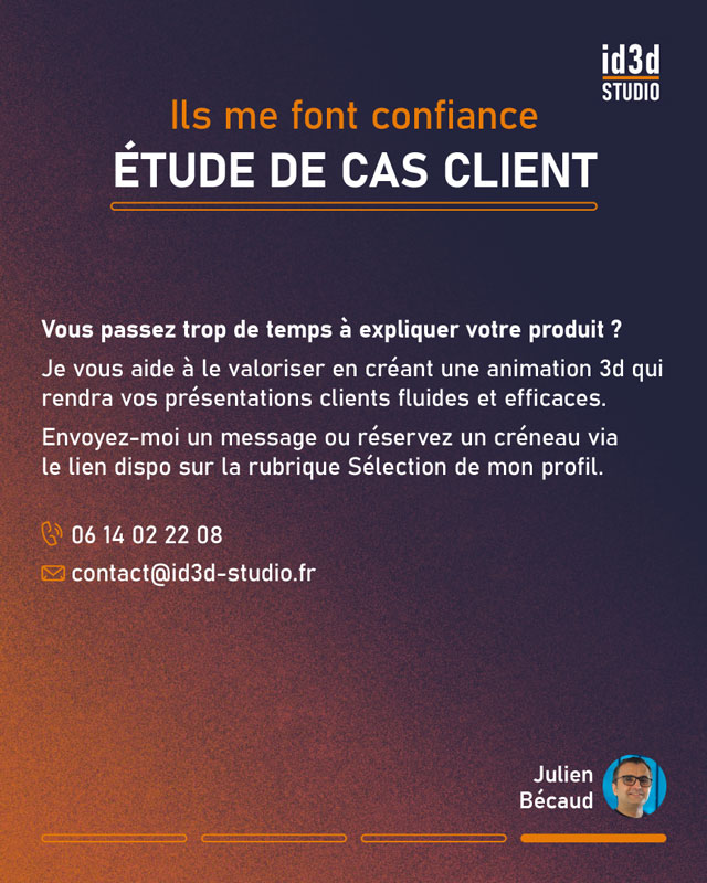 Chez id3d-Studio, on transforme les mécanismes complexes en animations claires, percutantes, utilisables directement en réunion, sur un site, ou dans une documentation commerciale.